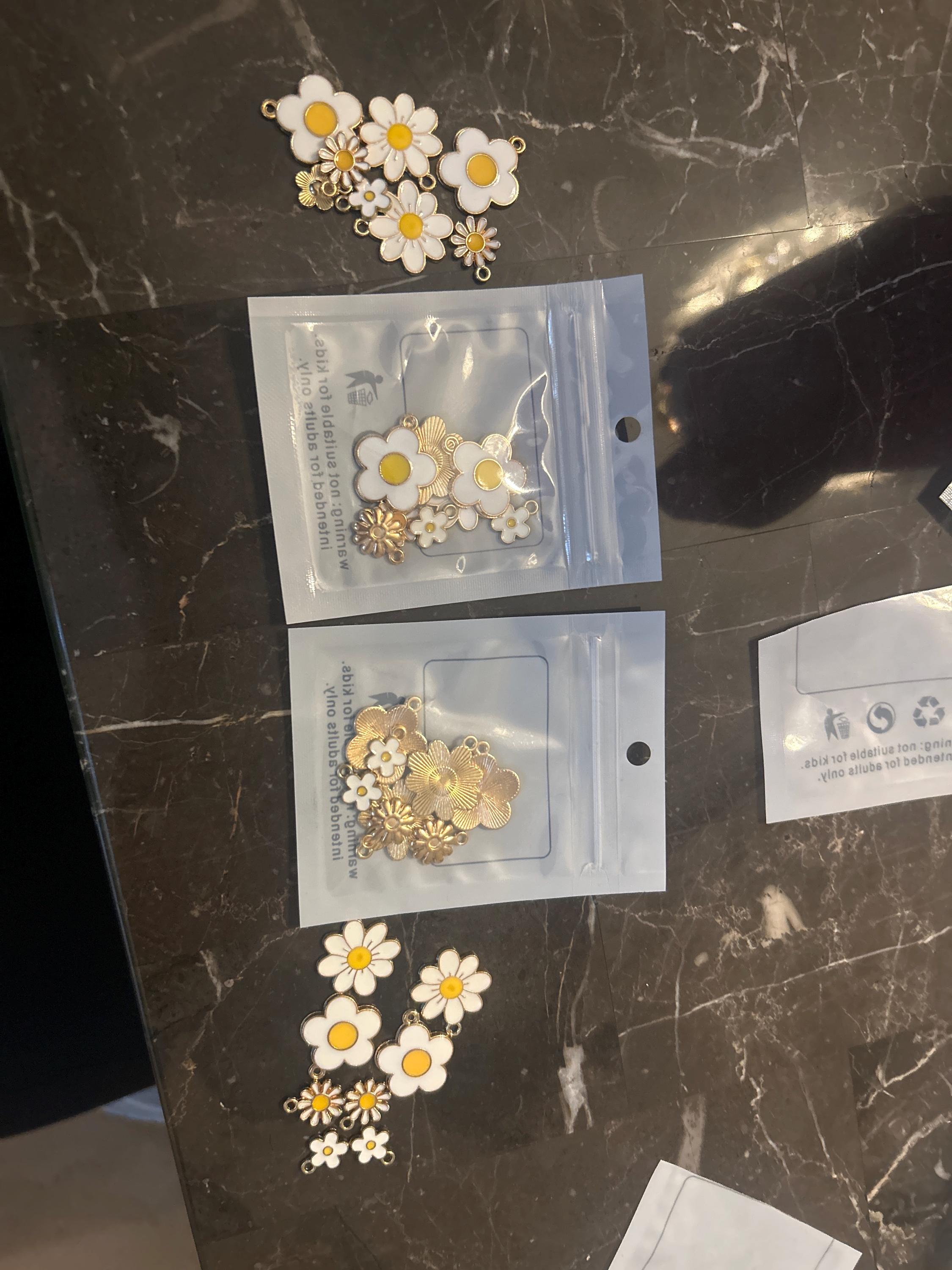 Brighten up your jewelry designs with this set of 16 white daisy charms, featuring gold-tone alloy with white enamel petals and a yellow center. Perfect for earrings, bracelets, necklaces, and other floral-inspired creations, these charming daisies come in four different sizes and styles, giving you plenty of design possibilities. Whether you're crafting for yourself or making gifts, these cute and versatile charms add a fresh, cheerful touch to any piece.